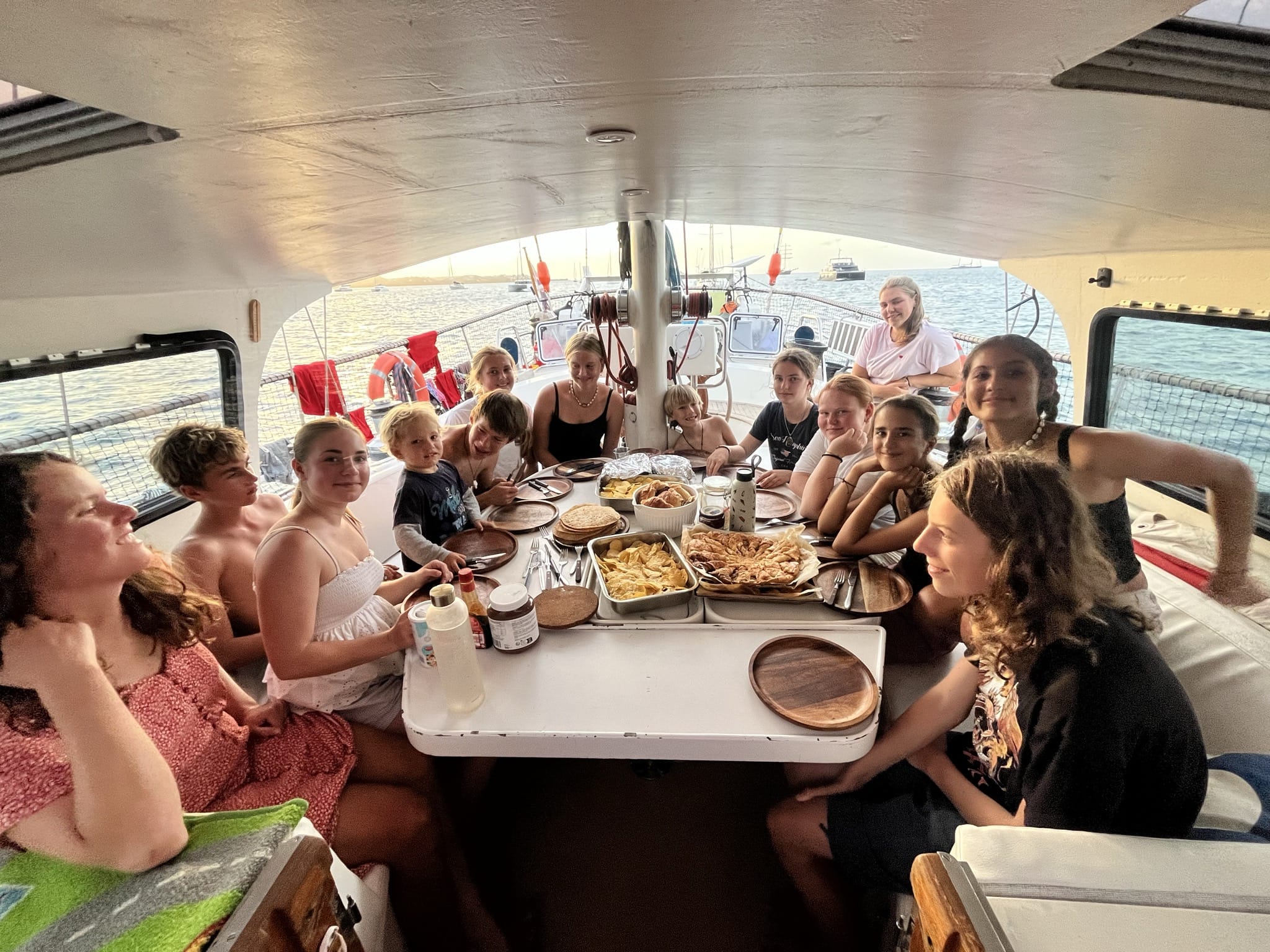De groep heeft zich klaar gemaakt voor het vertrek van Saar, Stijn, Anniek, Alex, Hannah en Hidde….Dit vond ik echt moeilijk. Iedereen krijgt kanaalkoorts (zoals mijn vader dat zegt) en begint te verlangen naar huis. Ook ik mis mijn huis, ouders, zusje, vrienden en vooral Terk (mijn lieve rode kater).  Wij hebben in de baai van Sint maarten nog een bezoek gebracht aan het Nederlandse Tallship de Gulden Leeuw. Ik ben toch blij dat wij op de kleinere Guppy zitten :)